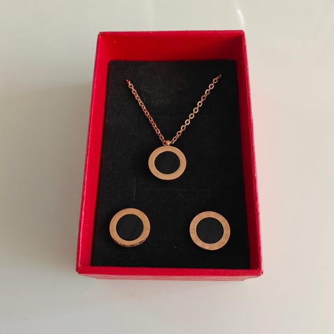 Sælger halskæde (tre blomster) og øreringe samlet som sæt. Det er købt hos en guldsmed for år tilbage. Brugt meget få gange.