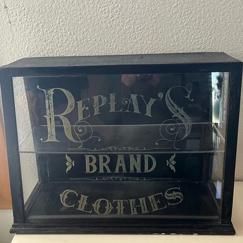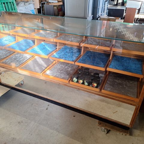 Glasdisk, Gammel butiksdisk. Formentlig fra en købmand eller et bageri, men vil kunne være fin i feks en blomsterforretning, en te/kaffe butik, eller på en café.