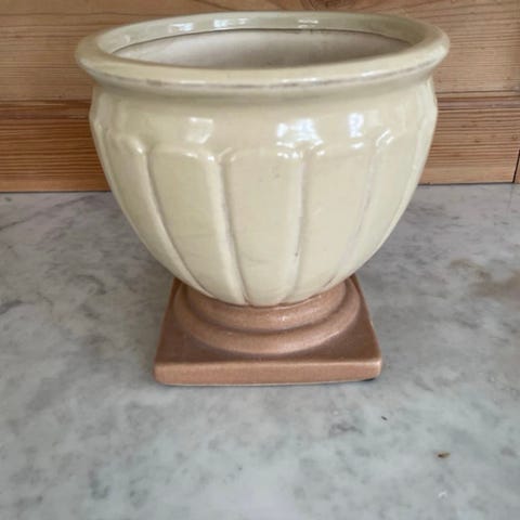 Smuk planteskjuler, potte, Ældre smuk brun krukke. I stil med syltekrukkerne. Kan både bruges ude og inde. Men der er ikke hul i bunden( man kan selv lave det)