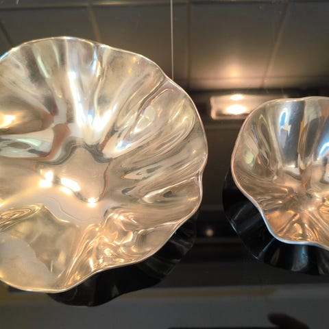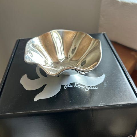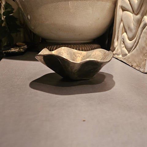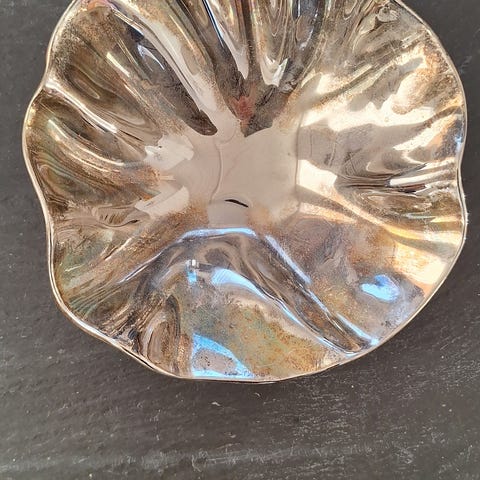 Fin bølgeformet skål I "sølv" ca 18x18 cm