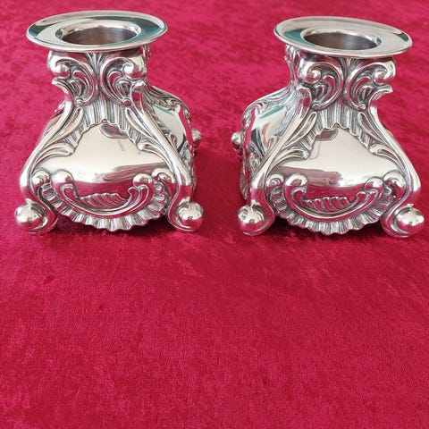 Lysestage, Sølv plet, 2 stk dobbelte lysestager uden skrammer i sølvplet. Pris for begge kr 450