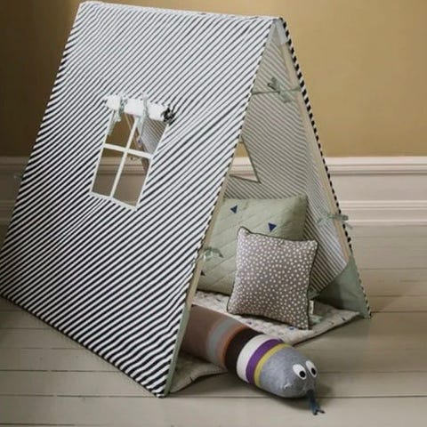 Indendørs Legeteltet The Tower Tent fra danske Budtz Bendix. Det er super holdbart og god kvalitet.
