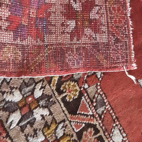 Meget gammelt Nahavand ægte tæppe med synlig brugsspor men stadig meget flot