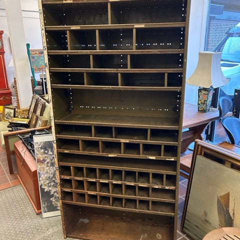 Står flot uden hak, mangler eller fejl. Der er smukke afskæringer og detaljer flere steder. Den står flot som den er eller kan slibes ned, eller males. og plads til 8-10 geværer.