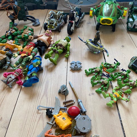 Flot sæt med bil og figurer. Originalt Ninja Turtles.