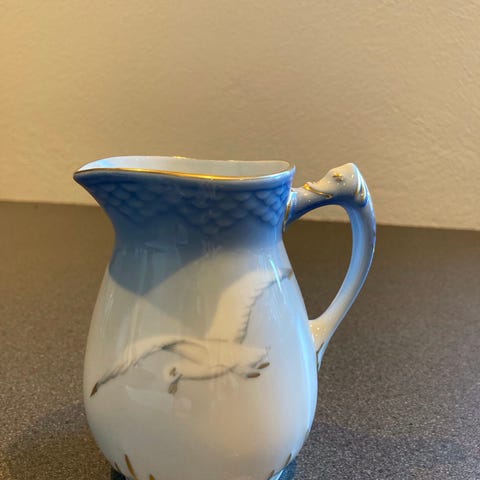 Vase i Mågestel med guldkant. Nr 681. Højde 12 cm. Ingen skår eller revner. 2. Sortering.