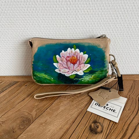 Depeche læderclutch i cognacfarvet med mange rum. Helt ny, dog ingen prismærker.
