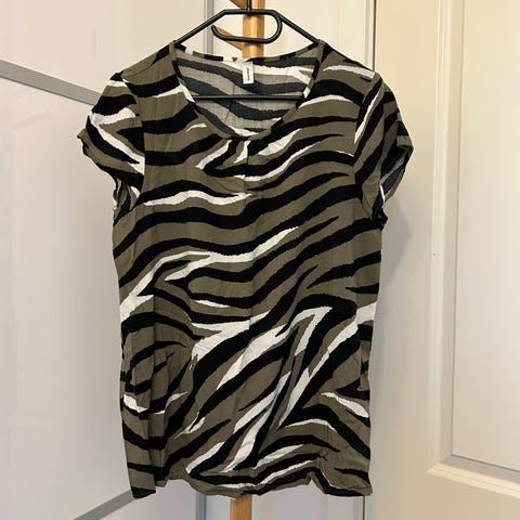 Rigtig fin tynd bluse med 3/4 ærmer, med striber som giver slimming effekt. Sidder rigtig fint. Er i rosa/grå/sort/hvid nuancer. Er fra Soyaconcept og købt i Magasin, str. XL. Brystmål er ca. 120cm. Brugt meget lidt og er som ny. Fra dyrefrit/røgfri hjem.