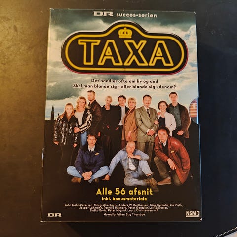 DR Taxa dvd med afsnit 1-6 af tv-serien. Serien følger livet og personerne på en københavnsk taxacentral og skildrer både arbejdsliv og privatliv for vognmænd og chauffører. Udgivelsen er på dvd og indeholder de første seks afsnit af serien.