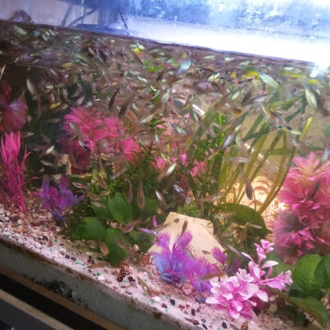 Der er blandet almindelig guppy mix og endlers.