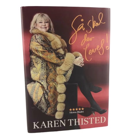 Så skal der leves , Karen Thisted , genre: biografi, Bogen er fra Politikens forlag fra 2013 på 217 sider og måler 17 x 25 cm. Den er indbundet