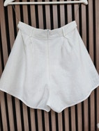 Et par seje shorts i en smuk og neutral hvid frave. Kvaliteten er en lækker hør blanding og kan nemt bruges her til sommer med en t-shirt. Den er højtaljet .