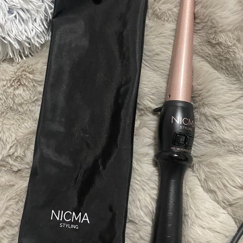 NICMA Styling Conical Curling Wand (14-25mm) er et helt fantastisk krøllejern, der gør det muligt at lave smukke, spændstige og misundelsesværdige krøller. Jernet har en kegleformet varmeflade med en diameter på 14-25 mm, hvilket er den perfekte tykkelse til dig, som ønsker krøller der holder sig faste og spændstige, uden at de bliver små. Den er lavet med justerbar temperatur fra 160-220 grader, så man kan indstille den præcis efter ens eget behov.