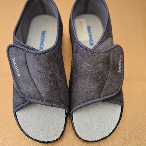 Den terapeutiske sandal har en solid ydersål af gummi, som gør den velegnet til brug både inde og ude. Indersålen er af blødt uld og er udtagelig, så den kan udskiftes med evt. egne specialsåler.
