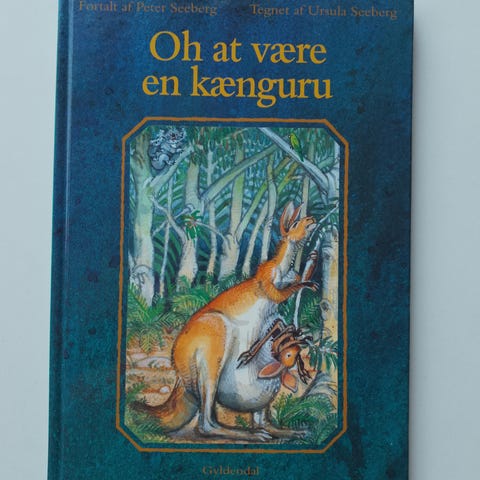 Billedbog, Højtlæsning, “Oh at være kænguru” fortalt af Peter Seeberg og tegnet af Ursula Seeberg. Billedbog udgivet af Gyldendal i 1995. “En kængurumor hopper tungt rundt i den australske ørken. I hendes pung sidder en velvoksen unge, og der befinder den sig rigtig godt. Hvorfor stå på egne ben, når man kan bruge sin mors?” Hardback i fin stand!