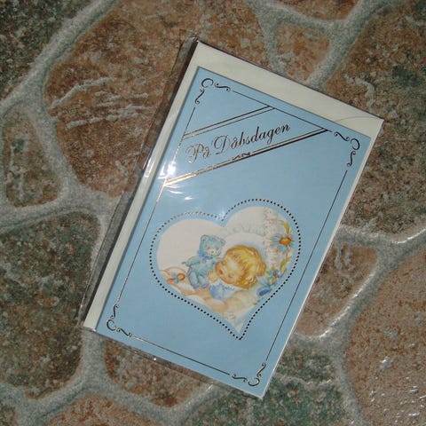 Bordkort, Bordkort til barnedåben. Søde kort i karton. Bukkes på midten, så de selv kan stå.