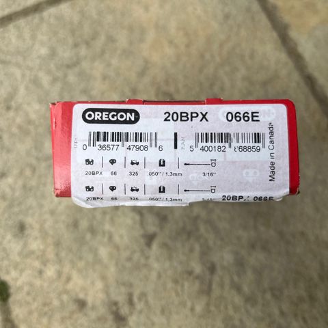 Ny og ubrugt Savkæde fra Oregon. Model: 91P052E. Kædetype: 3/8" Hobby. Bredde: 1,3 mm.
