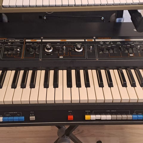 Klassisk analog vintage synth fremstillet i maj 1980. Serviceret med nye kondensatorer og back-up batteri. Lyder helt fantastisk og er umulig at få en dårlig lyd ud af. Med Rolands fantastiske ‘Ensemble’-effekt. Denne synth kendes også som Jupiter-4, JP-4, JP 4 og JP4. Toppen af Rolands kunnen for 45 år siden, og det kan man stadig høre i dag. Har selvfølgelig nogle brugsspor, men ikke noget, der generer. Super inspirerende at spille på, og samme type har været benyttet af bl.a. The Human League, Vince Clarke, Duran Duran og Infernal. Ingen bytte, kun kontant handel.