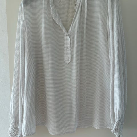Skjorten har v-udskæring med knapgang og der er lidt ekstra længde bagtil.