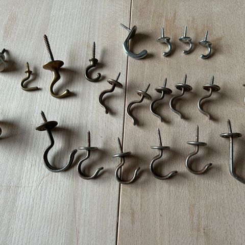 29 stk forskellige knager i metal, sælges samlet.