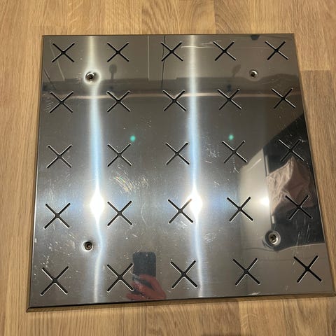 Spændende High Tech opslagstavle i blankpoleret metal.