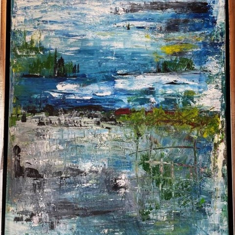 Marianne Dam Hansen originale maleri i akryl på lærred indrammet i svæveramme.