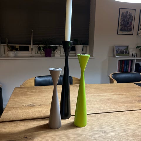 Disse 3 lysestager er 20 25 og 35 cm høj, og købsprisen var 129 kr 169 kr 199 kr. De sælges billigt for 13 kr 17 kr og 20 kr