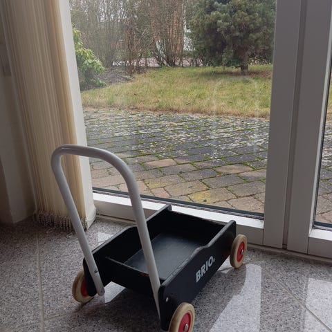 Baby Gåvogn med klodser fra BRIO for at øve at gå.