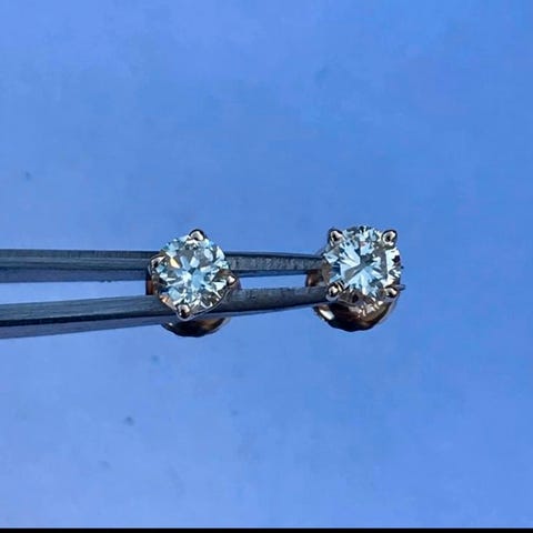 Øreringene vejer 5,8 gram, og der er ca. 1,6 ct diamanter, hvilket svarer til 0,32 g. Dvs. der er 5,48 gram 18 kt hvidguld.
