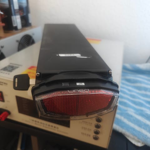 Cykel batteri i rigtig god stand, men fejler ingenting. Holder op til flere dage, afhængigt af hvor meget du cykler. Sælges da selve cyklen gik i stykker. Kan afhentes på Frederiksberg