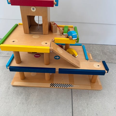 Det fine parkeringshus i træ fra Little Tikes er til de allermindste. Bilhuset har tre etager, som de tre biler kan rejse imellem ved hjælp af elevatoren. Øverst på taget af elevatortårnet er helikopterlandingspladsen, hvor den lille helikoper kan lette og lande. Nederst i jordniveau finder du to benzinstandere, hvor de søde biler kan få fornyet energi.