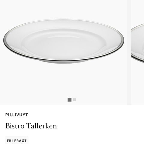 9 stk. Pillivuyt Bistro tallerkener med sølvkant, diameter 27 cm. 75 kr. pr stk. Ved køb af alle ni stk er prisen 600 kr.