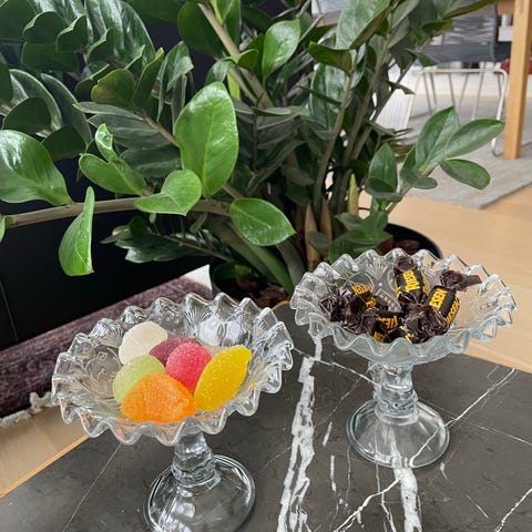 Glasfad, Håndlavet glasfad i perfekt stand ingen skår eller hakker måler 32 cm i diameter.