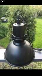 Mål: Skærm H: 30 x Ø: 25 cm og selve kæden med jern roset og indbygget ophængs krog på 48 cm
