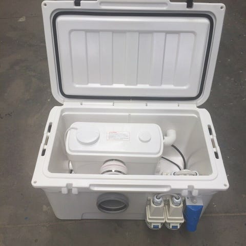 Toiletkværn med pumpe i isolerer kasse