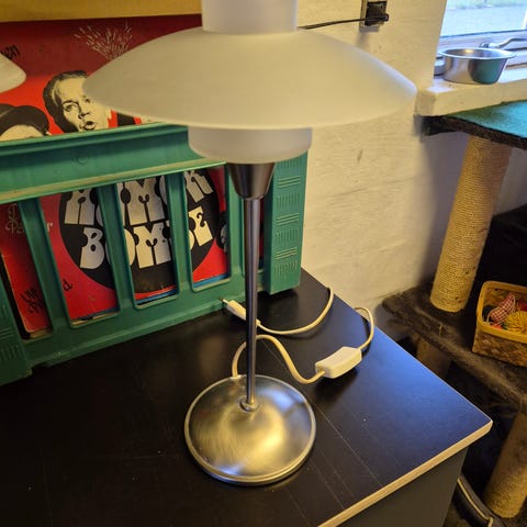 Anden bordlampe, Vides ikke, Hvid glaslampe med sort stofskærm