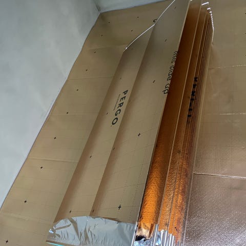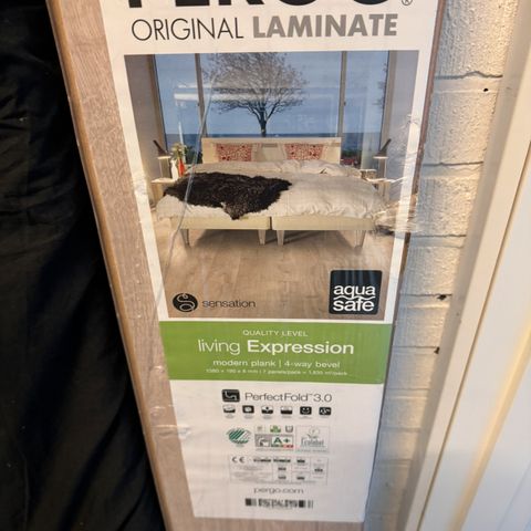 Isolerende underlag til at bruge under Pergo gulve. Vi har en pakke til overs (plus lidt ekstra løse stykker, der følger med). Pakken er åbnet, men vi kom aldrig til at bruge noget af den.