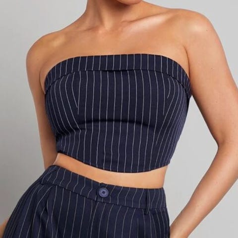 Mørkeblå bandoo top med nålestriber