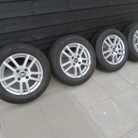 4 stk MSW Alufælge 16" 4x108 ET 23 med 195 55 16 Michelin primacy 4 sommerdæk 80% mønster. De er afbalanceret. Passer til 207 208 Citroen C3 DS3 sælges samlet 3500