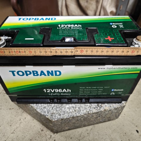 Stort batteri på 100 ampere. Kan bruges til mange ting, bare ikke som start batteri. Vejer kun 13 kg.