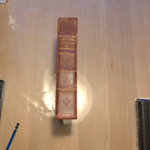 Indbinding: Halvlæderbind med guldtryk på ryggen