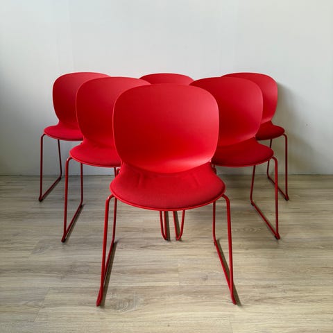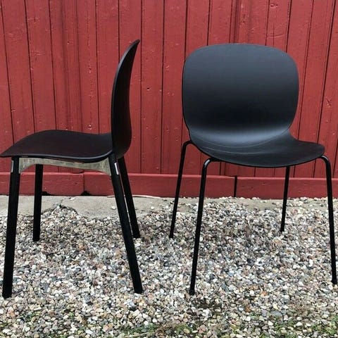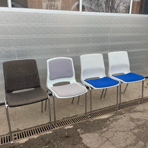 4 stk RBM stole Ana 4340 i mørk grå / antracit / charcoal. Praktisk stabelbar kvalitets stol med god komfort. Spisebordstol, kontorstol, kantinestol