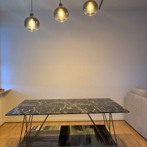 Flot bord kan bruges ud som ind , med marmor laminat , nemt vedligeholdelse, kan tåle vand