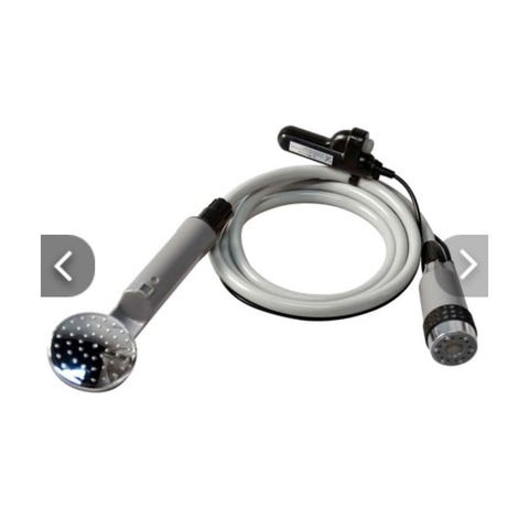 Håndbruser med slange til retro camping. Telt teltvogn campingvogn.