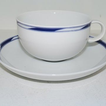 Stor morgenkop med underkop med sort eller brun tegning