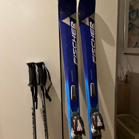 Fischer RX Fire 160-R14-114-70-100. Gode allround ski. Brugt få timer efter sidste slibning og voksning. En ski der kan bruges mange år endnu.