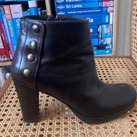 Det blødeste kalveskind fra det italienske mærke Sturlini. Sålen er i læder. Skoene er en størrelse 38 med få brugsspor. Det eneste synlige er 2 små ridser i skindet på den højre skosnude. Skoen har været brugt 2-3 gange. Har kostet 2500 kroner.
