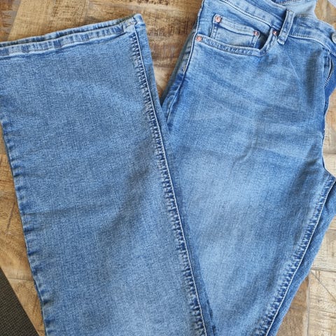 Flest jeans men også bukser i andet stof. Kan lægges ud til gennemsyn og selvbetjening eller prøves på min 1. sal.