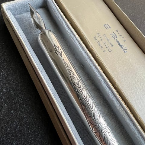 Forsølvet, 43cm bredt, ingen glad i blækhuse