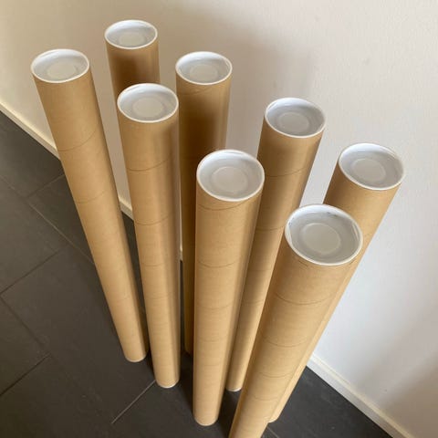 6 stk paprør 9cm i diameter og 100 cm lange. Helt nye. Var nødt til at købe en hel kasse… afhentning. 50 kr pr. Stk. Alle 6 for 250 kr.